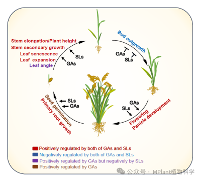 图1 赤霉素与独脚金内酯多方面协同调控植物生长发育