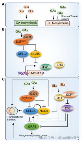 图2 赤霉素与独脚金内酯信号多层次互作网络
